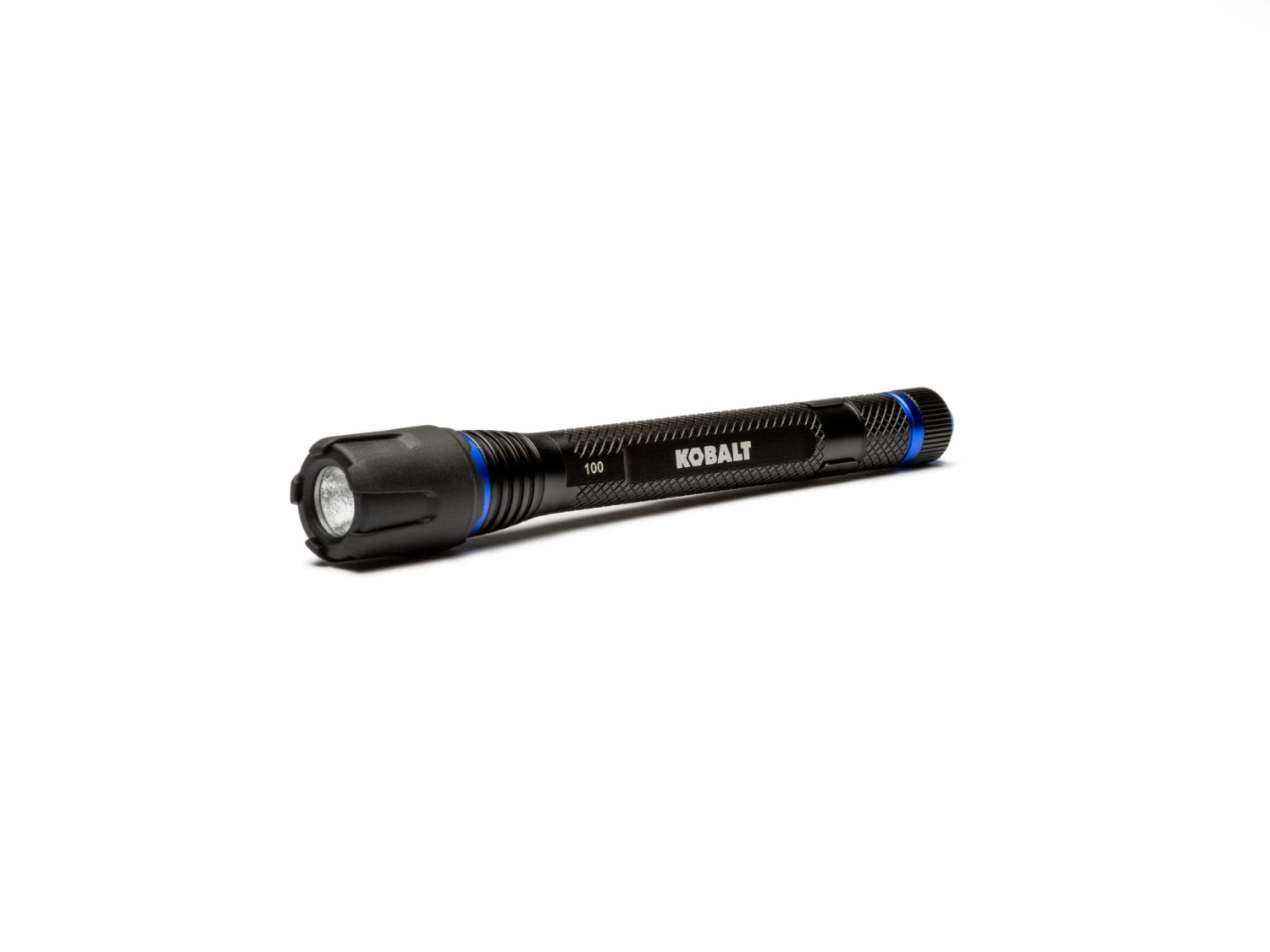 - Kobalt flashlight delivers 100 lumens of super-bright LED light