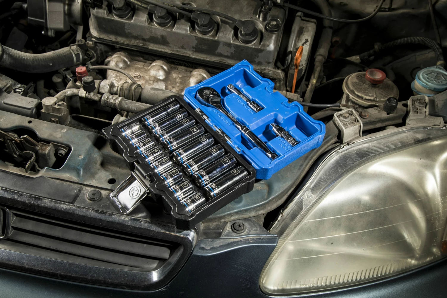 - Contains 16 commonly used shallow and deep metric sockets, 1 ratchet, 1 extension and 1 universal joint