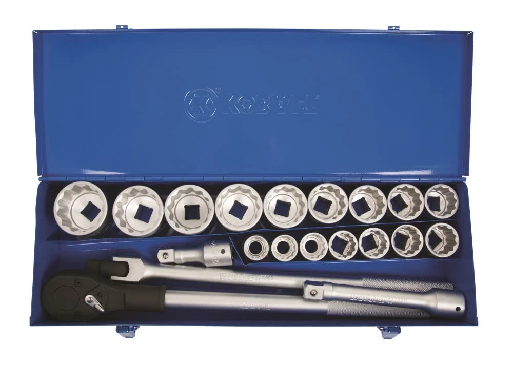 Kobalt 20-piece 3/4-inch drive mechanic’s tool set includes heavy-duty drive tools, including a ratchet, breaker bar, 2 extensions and 16 sockets, making it easy to tackle any large project.