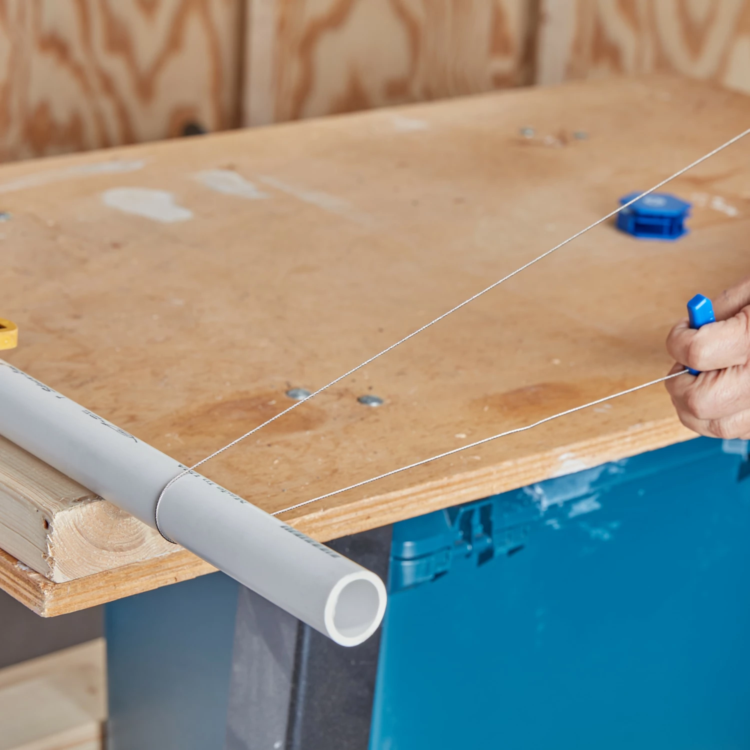 - Cuts PVC pipe in tight space