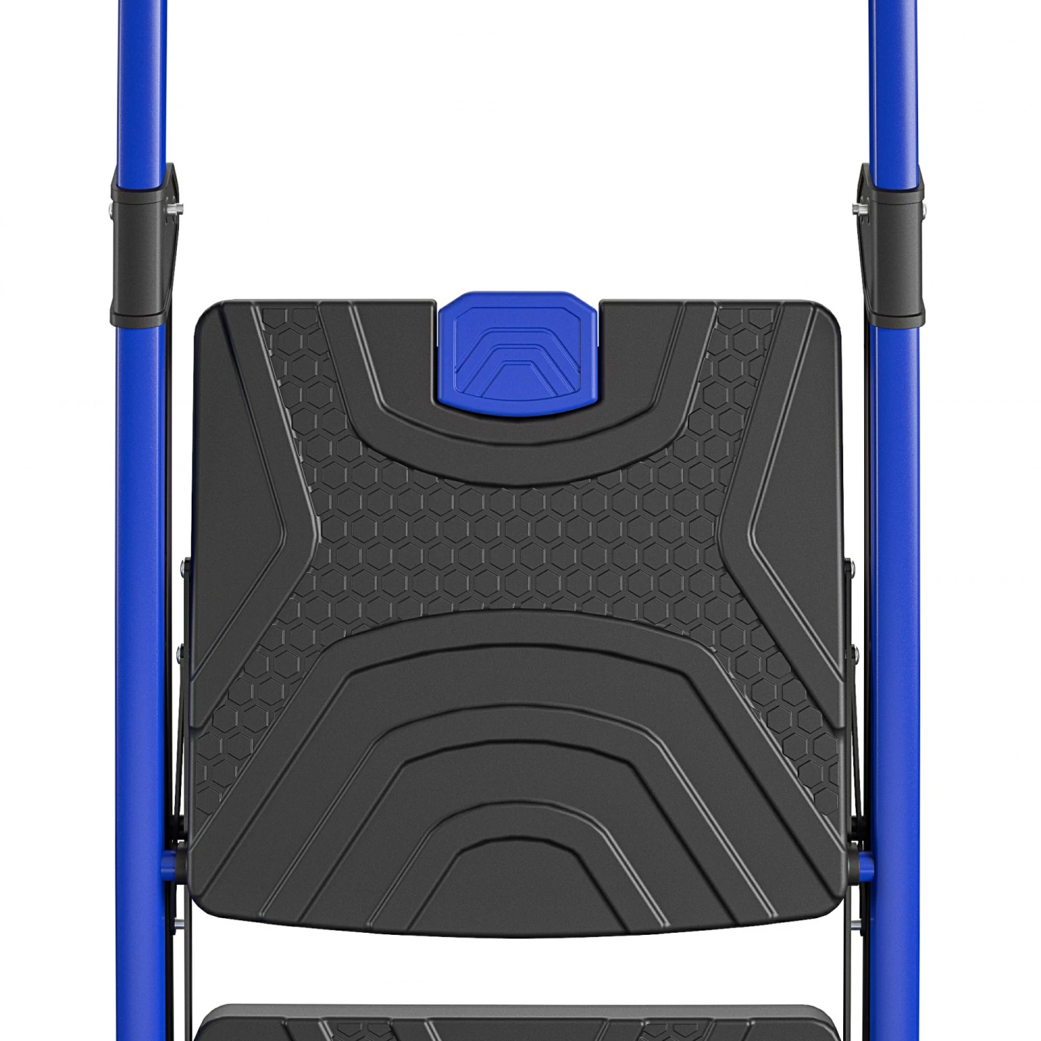 Designed for rough and tough dependability to help you get any project done. The strong steel frame and oversized steps combined with a 300 pound load capacity provides stability, comfort and safety as you work. Conveniently equipped with a built-in project top, perfect for holding your hardware and tools as you work. Rugged non-slip treads and large, non-marring feet will keep you feeling secure. Folds flat for easy transport and storage. Features an ANSI type 1A duty rating and a limited lifetime warranty.